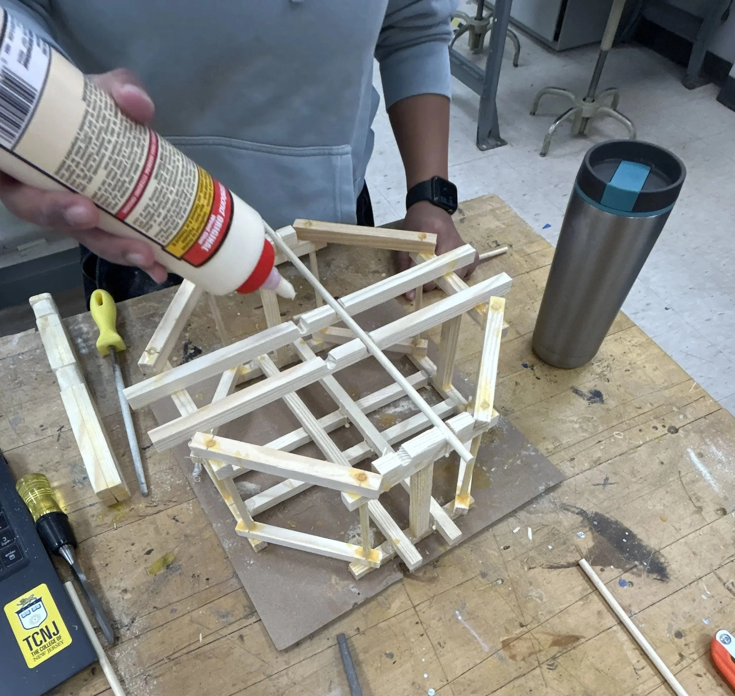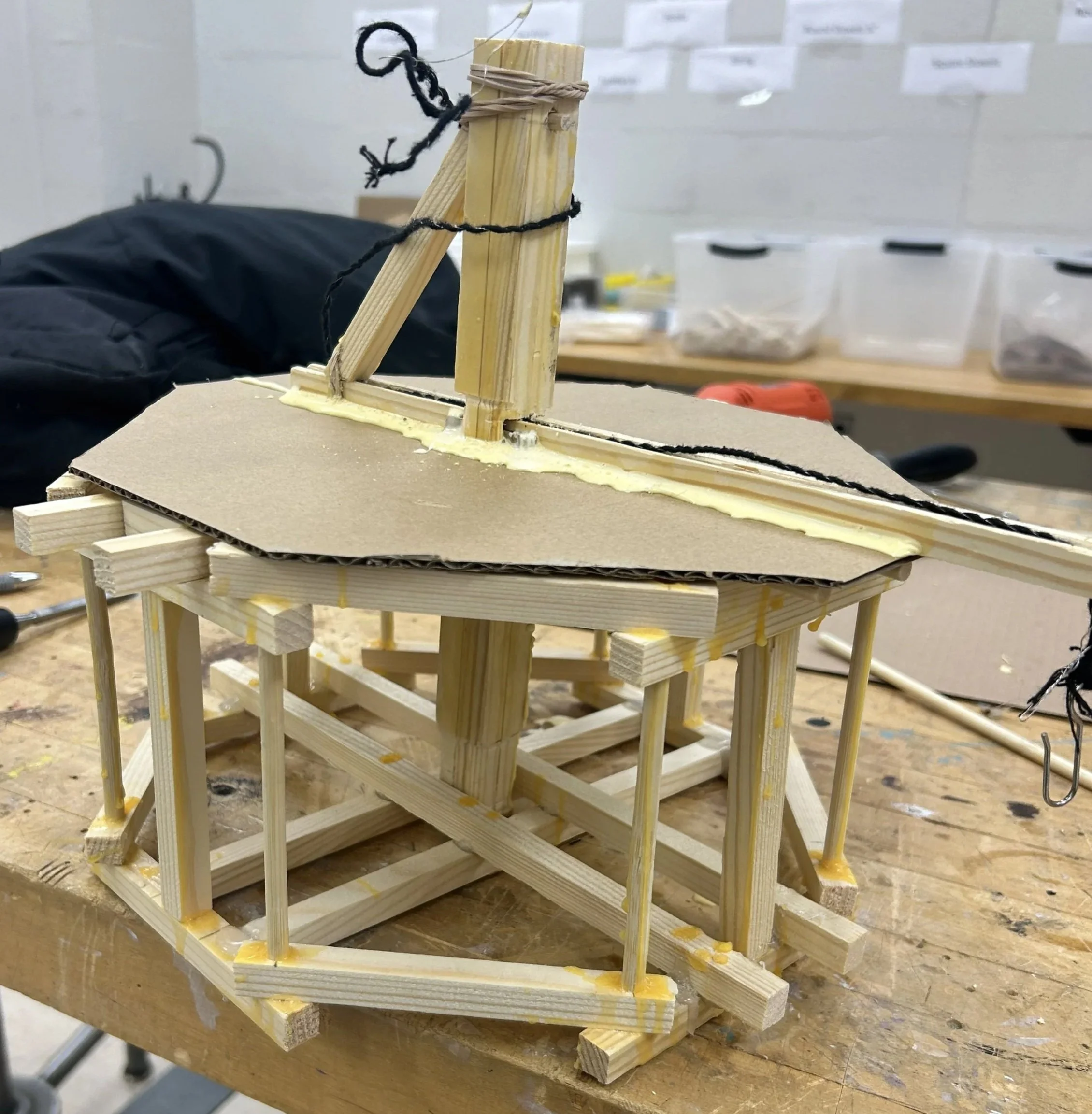 The 1st Place Engineering Model Crane was designed around a hexagonal base to maximize stability and strength while minimizing weight. I calculated structural stresses and optimized each member for efficiency, then fabricated and assembled the crane under strict budget and load constraints. To document the full design process, I produced a 10-page engineering report detailing calculations, material choices, and testing results.