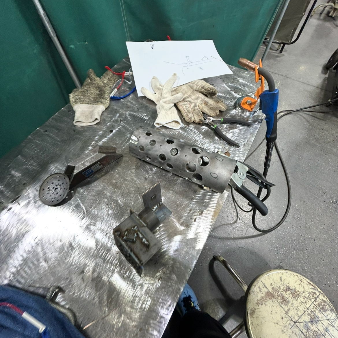 Fabricated from scrap steel with an integrated flame holder, the chamber withstands high heat and stabilizes the combustion process.